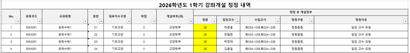 수강정원 증원과 관련하여 변동사항 사전 안내드립니다.