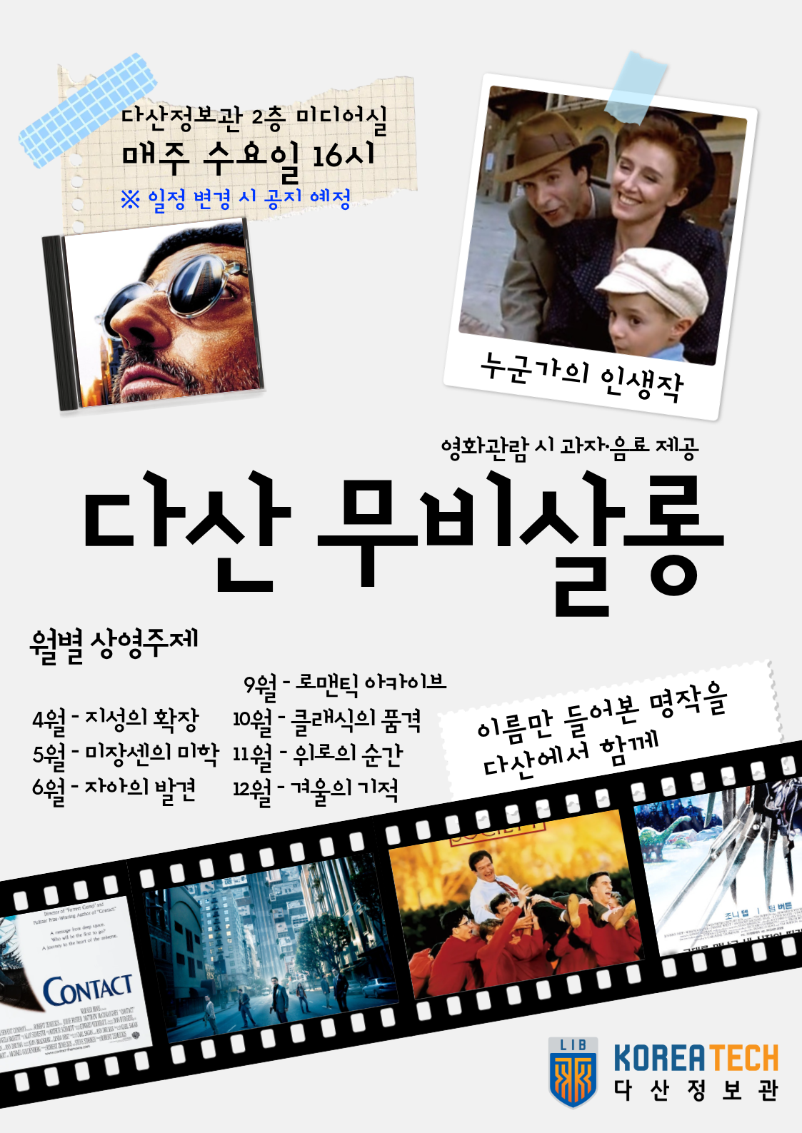 2026학년도 4월 1일부터 정기 영화상영 프로그램 '다산 무비살롱' 운영을 시작합니다.