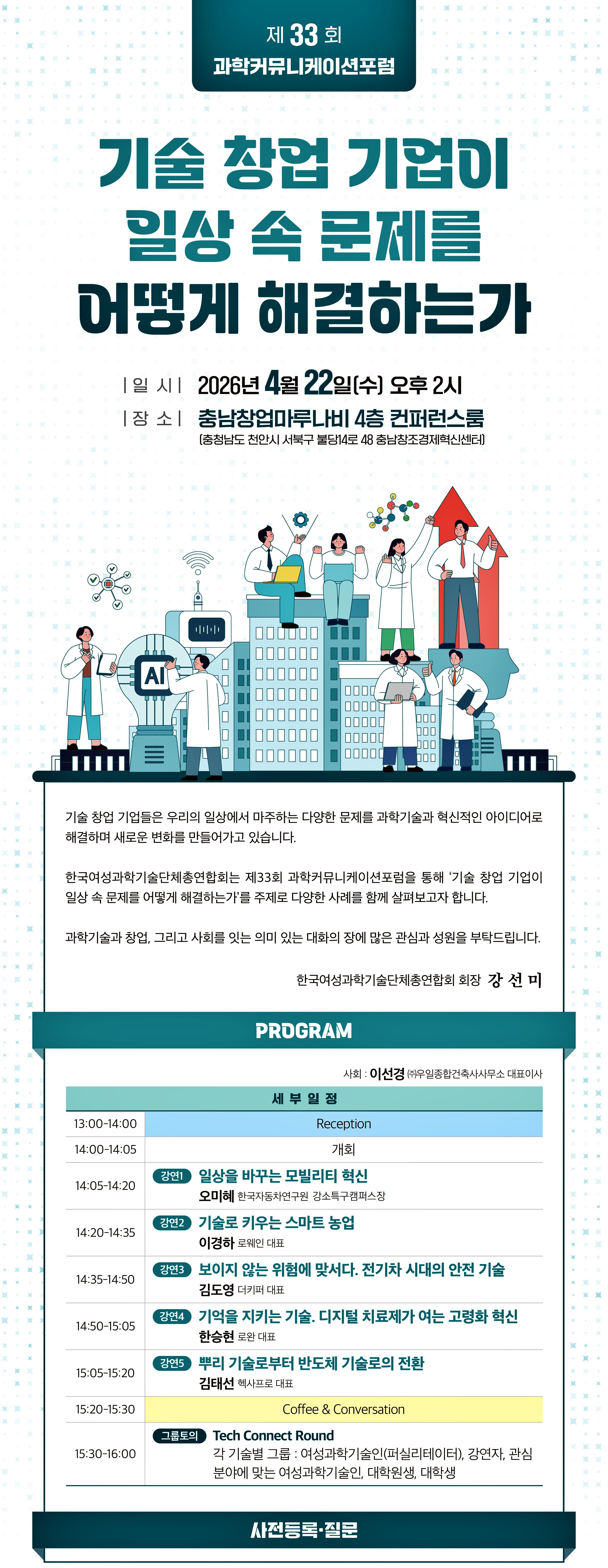 *행 사 명: [제 33회 과학커뮤니케이션 포럼] 기술창업 기업이 일상 속 문제를 어떻게 해결하는가