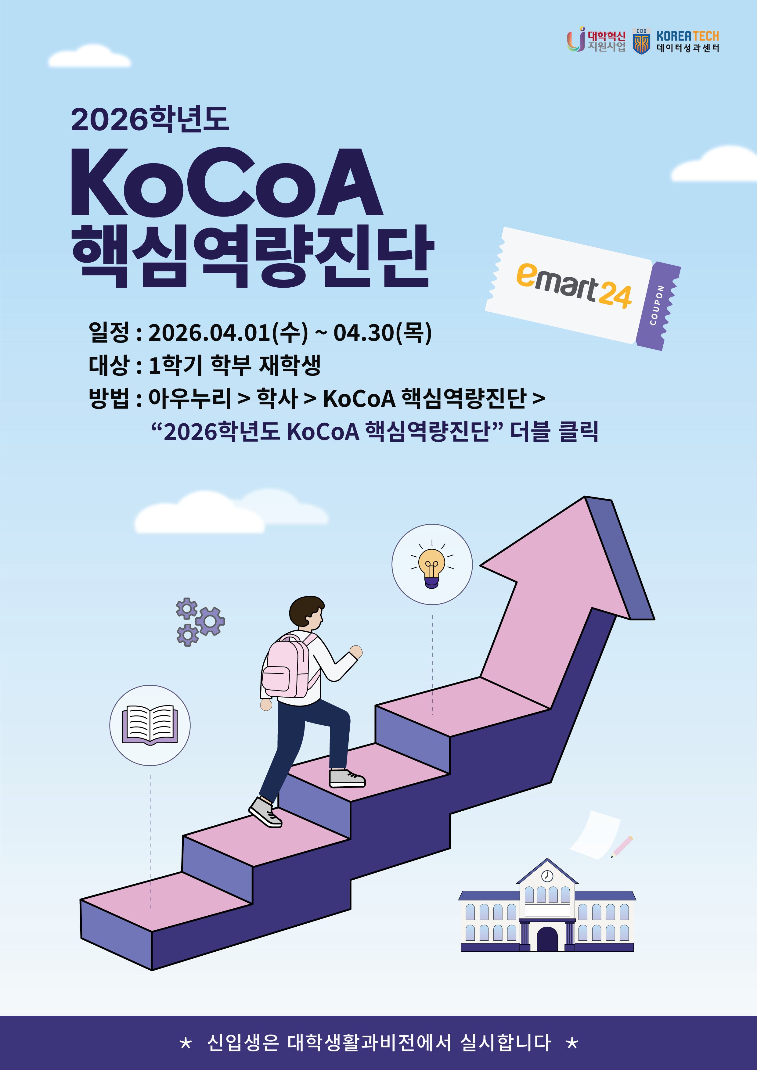 ① 아우누리 - 학사 - KoCoA 핵심역량진단 - KoCoA 핵심역량진단 - 조회 후 실시